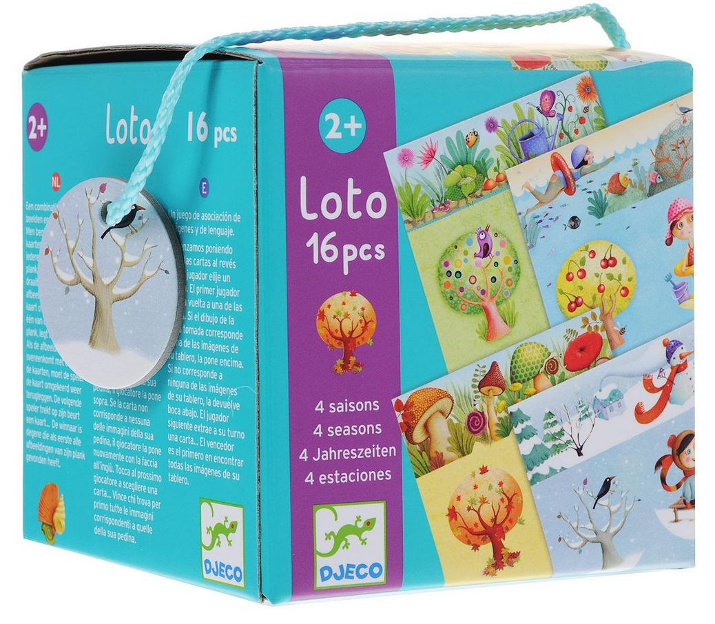 Gra planszowa zaprojektowana przez Djeco z pięknymi ilustracjami Marie Desbons odpowiednia już dla dwulatka.Loteryjka obrazkowa, pokazująca dzieciom zmiany zachodzące w przyrodzie w ciągu roku. Każde dziecko lub rodzic i dziecko ma inną porą roku i znajduje element pasujący do swojego obrazka.Prosta zabawa dająca wiele satysfakcji.Krótka instrukcja gry:1. rozłóż karty na stole obrazkami do dołu i poproś graczy aby wybrali sobie tabliczkę,2. pierwszy gracz wybiera kartę ze stołu, odwraca i sprawdza czy rysunek na karcie zgadza się z rysunkiem na swojej tabliczce,3. jeśli się zgadza, kładzie obrazek na odpowiadającym mu obrazku na tablicy,4. jeśli się nie zgadza, odkłada na stół, a kolejną kartę wybiera następny gracz,5. wygrywa ten, kto pierwszy znajdzie wszystkie obrazki jakie ma na swojej tabliczceWiek: 2+Materiał: gruby, wytrzymały karton