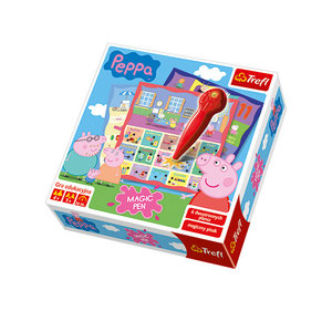 Magic Pen - Świat PeppyMagic Pen Świat Peppy to fascynująca gra, która stymuluje rozwój dziecka. Bawiąc się, dziecko ćwiczy spostrzegawczość, wyobraźnię i logiczne myślenie.Zawartość pudełka:6 dwustronnych planszMagiczny pisakInstrukcja