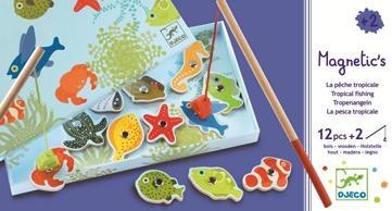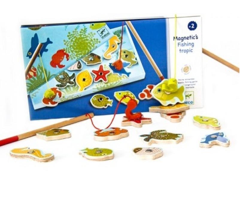 Magnetyczna gra zręcznościowa łowienie kolorowych rybek to świetna zabawa dla dzieci, która rozwija zręczność i ćwiczy koordynację oko-ręka. Wiek: 2+ Materiał : drewno , karton Wymiary:28x15x2,5 cm Zestaw zawiera : -12 drewnianych rybek -2 wędki -pudełko ""ocean- w którym pływają rybki