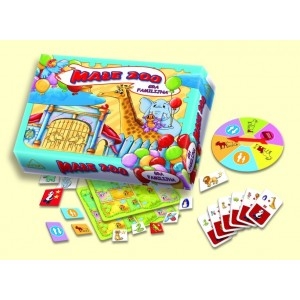 AXEL - świat puzzli i gier dla dzieci i dorosłych.Które dziecko nie lubi odwiedzać ogrodu zoologicznego? Można tam podziwiać egzotyczne okazy, wspaniałe zwierzęta czy gatunki zagrożone wyginięciem. Teraz to wszystko może wydarzyć się na planszy tej wspaniałej gry, bo każdy uczestnik zabawy jest jednocześnie właścicielem ogrodu zoologicznego! Sam musi zbudować własne zoo oraz mądrze go zagospodarować (uwaga: ilość miejsc ograniczona), a także zadbać o swych podopiecznych. Gra uczy strategii działania, planowania i podejmowania trudnych decyzji (czy korzystniej jest posiadać więcej małych zwierząt czy mniej dużych?). Atrakcją każdego ogrodu są zwierzęta egzotyczne i rzadko spotykane jak miś panda czy kameleon. Walcząc o nie należy wykonać specjalne zadania. Gdy nasze Małe zoo zapełni się prawdziwymi okazami, przyjdzie czas na wymianę zwierząt z innymi graczami, a także odwiedziny zwiedzających nasz ogród. Wszystko to prowadzi nas prostą drogą do zwycięstwa (zdobywamy kolejne punkty). Wygrywa najlepszy! products features  Wiek: 5-99 Ilość graczy: 2-4 Elementy: 4 plansze zoo, kołowrotek, 23 karty, 39 żetonów  zwierząt, 56 biletów zoo Czas gry: 30 minut