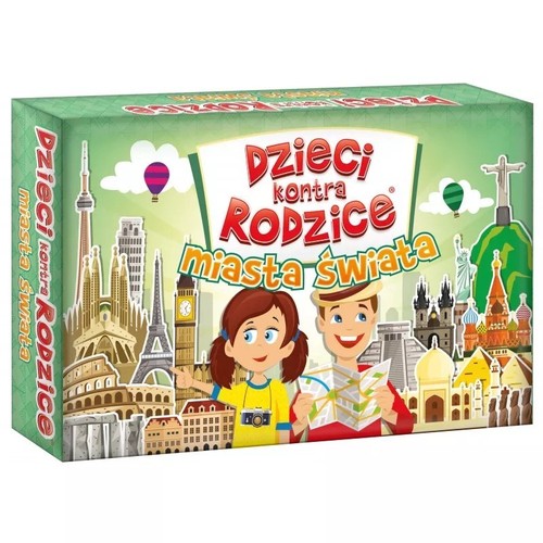 Gdzie zobaczymy Koloseum, a gdzie Big Ben? Z czym kojarzy się Toruń? W jakim mieście jest wieża Eiffla? Wesołe pytania zapewnią Wam ciekawą podróż przez miasta świata. Dzieci rywalizują z rodzicami. W grze znajdziecie pytania specjalnie przygotowane dla dzieci i rodziców.