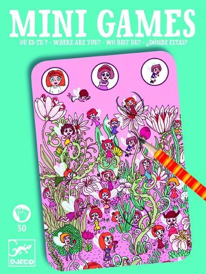 Nowość w propozycji gier firmy Djeco Mini gra Gdzie jest Róża.Niewielkie gabaryty spowoduję że będzie poręczna w podróży i zajmie dzieciaki na długie godziny. W ofercie kilka rodzajów mini gier . 30 kart Wiek:6+ Wymiary opakowania 11 x 15,5 x 1,3 cm