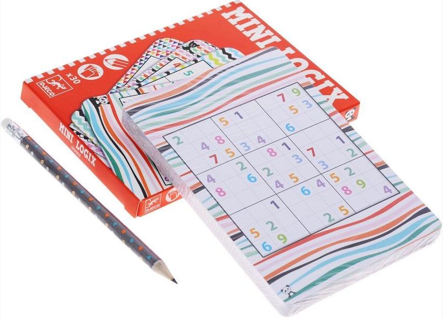 Fill in the empty spaces with the numbers 1-9. Includes 30 game cards and a pencil. Design Petit Pois Box 11 x 15.5 x 1.3cm Age 6-10