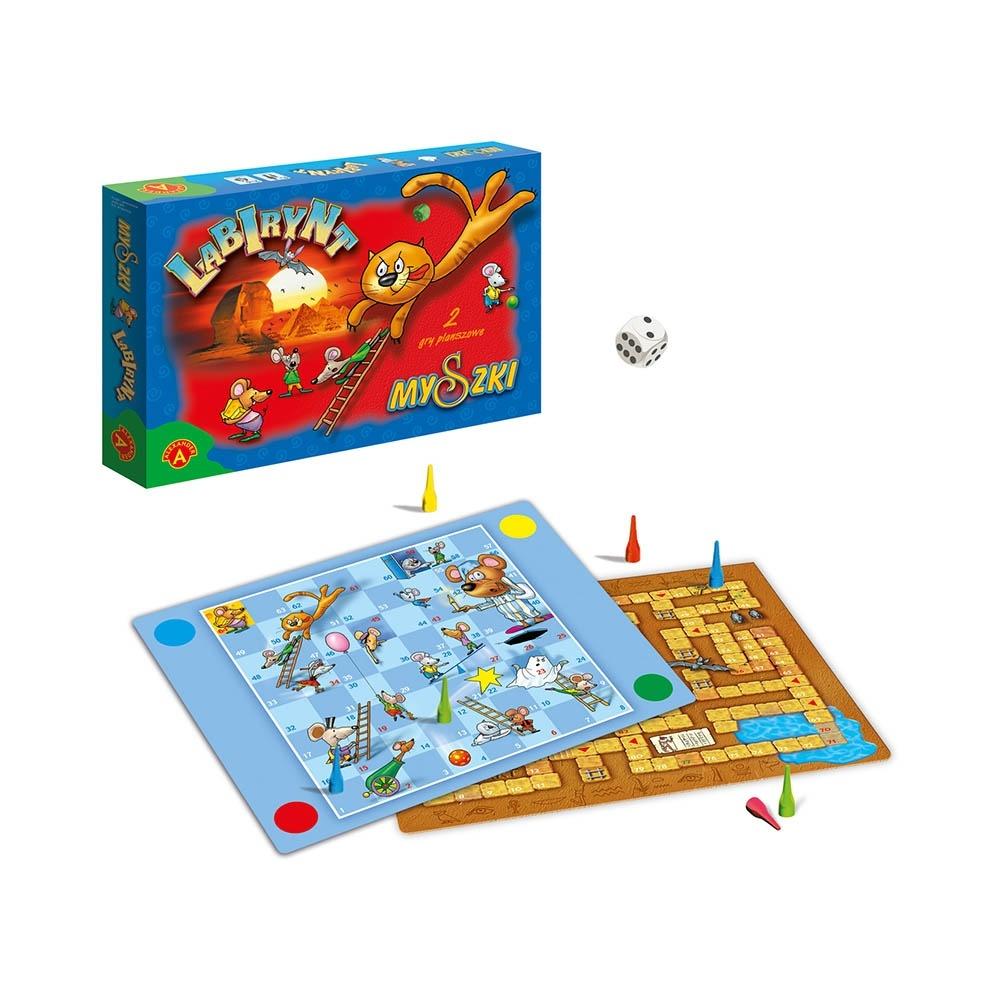 Labirynt"" i ""Myszki"" to dwie gry losowe skierowane do najmłodszych. Zwycięzcą w tych grach zostanie ten kto najszybciej dotrze do celu. Droga jest pełna niespodzianek, pułapek i niebezpieczeństw. Bajkowe tło i ciekawy scenariusz obu gier zapewnią świetną zabawę dzieciom i całej rodzinie. Gra dla 2-4 graczy w wieku od 5 lat.