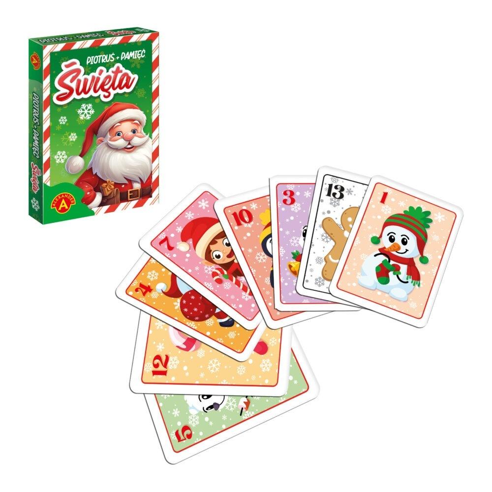 Opis produktuZasady bezpieczeństwaZestaw 25 kart z grafikami w Świątecznym klimacie, dzięki którym można zagrać z dziećmi w dwie podstawowe gry karciane Piotruś i Pamięć. Obie gry wspaniale ćwiczą spostrzegawczość, rozwijają skojarzenia oraz uczą zachowań społecznych. To idealny wstęp dla najmłodszych do świata gier, a także przyjemne wprowadzenie w świąteczny klimat. Zawartość opakowania
