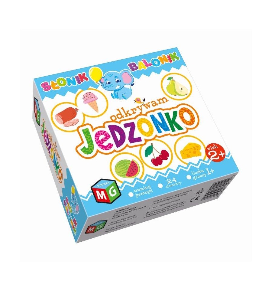 Opis produktuZasady bezpieczeństwaSłonik Balonik wychodzi naprzeciw potrzebom najmłodszych. Dzięki zastosowaniu dużych elementów z wysokiej jakości grubej tektury, dzieci z łatwością je chwytają, ćwicząc małą motorykę. Kolorowe obrazki rozbudzają w maluchach wyobraźnię, a zróżnicowane zadania świetnie wpływają na ich rozwój. Odkrywam jedzonko to przyjemna gra dla maluchów i ich rodziców. Proste i miłe dla oka ilustracje ułatwiają dziecku poznawanie elementów codziennego posiłku i odróżnianie ich od siebie. Gra ćwiczy pamięć oraz jest doskonałym treningiem koncentracji. Okrągły kształt elementów i gruba tektura sprawiają, że zabawka jest odpowiednia nawet dla małych dzieci. Zestaw zawiera: