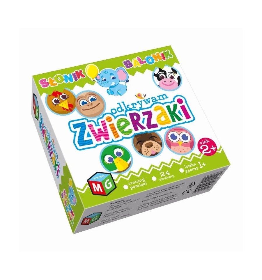 "ODKRYWAM ZWIERZAKI" to przyjemna gra dla maluchów i ich rodziców.Proste i miłe dla oka ilustracje ułatwiają dziecku poznawanie zwierząt i odróżnianie ich od siebie. Gra ćwiczy pamięć oraz jest doskonałym treningiem koncentracji. Okrągły kształt elementów i gruba tektura sprawiają, że zabawka jest odpowiednia nawet dla małych dzieci. Zestaw zawiera: ilustrowane tabliczki - 24szt oraz instrukcję.