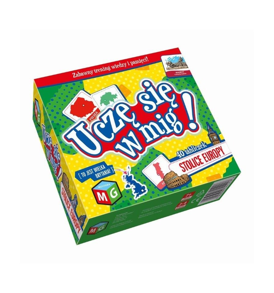 Opis produktuZasady bezpieczeństwaUczę się w mig. Stolice Europy to wspaniała gra, która rozwinie pamięć i spostrzegawczość Twojego dziecka. Dodatkowo poszerzy jego wiedzę z zakresu geografii i pomoże obudzić w nim naturę prawdziwego podróżnika, zapewniając przy tym dużo dobrej zabawy i emocji. W grze wygrywa ten, kto najlepiej zapamięta położenie par państw i ich stolic, odkrytych na chwilę, spośród wszystkich ilustrowanych tabliczek leżących na stole rewersem do góry. Odkrywaj wiele wspaniałych miejsc i zdobywaj wiedzę o naszych europejskich sąsiadach. Zawartość opakowania: