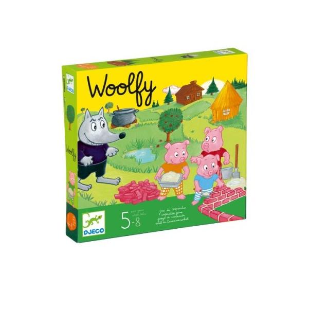 Gra planszowa Wilk i świnkiWiek: 5 - 8 latLiczba graczy: 2 - 4Czas gry: 20 minZawartość pudełka:Plansza, 3 różnokolorowe figurki świnek, 1 figurka wilka, 1 garnek do gotowania (dla świnek), 3 kostki go gry w różnych kolorach, każdy pasujący do koloru świnki (ponumerowane 1, 2 i 3, oraz każda z kostek zawiera jeden rysunek domku i dwie postacie wilka), 1 domek z cegły do budowania, składający się z czterech częściCel gry:Pracując razem, aby bezpiecznie doprowadź 3 małe świnki do domku z cegły (który najpierw musi zostać wybudowany przez graczy) zanim wilk będzie w stanie je złapać.