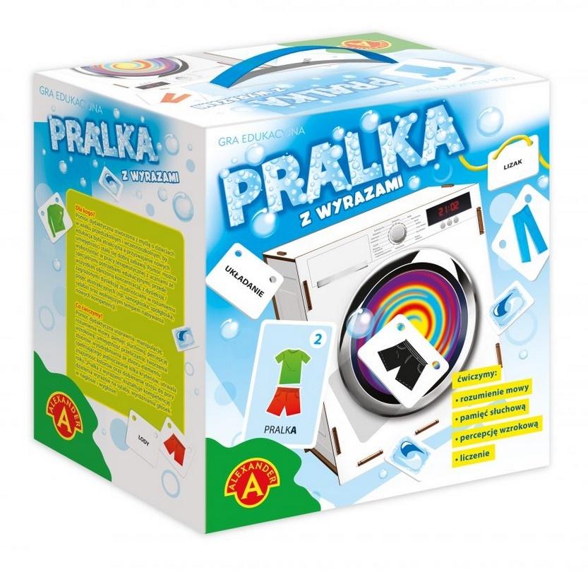 Opis produktuZasady bezpieczeństwaPralka to wyjątkowa gra edukacyjna z nietuzinkowymi rekwizytami. W zestawie znajdziemy trójwymiarową drewnianą pralkę o wymiarach 19 x 21 x 12 cm. Dziecko umieszcza kartoniki z wyselekcjonowanymi strojami w środku pralki. Po umownym procesie prania, następuje rozwieszanie ubranek. Kartoniki mają specjalne otwory umożliwiające ich nawlekanie na załączone w zestawie sznurki. Cała zabawa jest pretekstem do ćwiczeń poprawnej wymowy, głoskowania, sylabowania, pamięci słuchowej, percepcji wzrokowej, umiejętności przeliczania, wyodrębniania ze zbioru. Zawartość opakowania