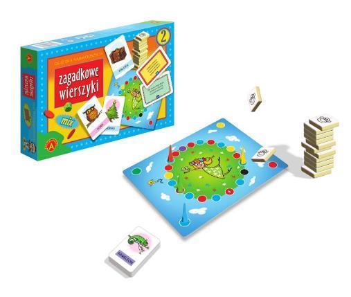 Zagadkowe wierszyki - mix"" to gra w której dzieci odpowiadają na zagadki, umieszczone na 55 kartach i sprawdzają swoją zręczność podczas układania "" wieży"" z plastikowych tabliczek. Zwycięzcą zostanie gracz, który zdobędzie najwięcej żetonów za prawidłowe odpowiedzi i budowanie wieży.