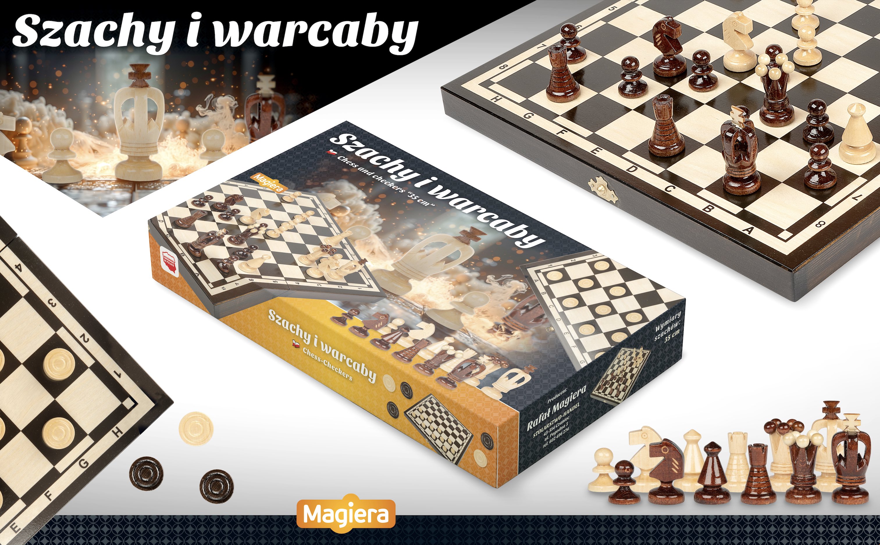 Opis produktuZasady bezpieczeństwaSzachy i Warcaby ""35"" to kombinacja dwóch gier, które zapewniają świetną zabawę na długie wieczory . Bardzo dobre dla dzieci do nauki gry w szachy i warcaby . Szachownica wyposażona jest we flokowaną wkładkę z przegródkami służącą do przechowywania figur szachowych i warcabowych , wykonana z drewna bukowego i brzozowego. Figury szachowe są wykonane z wysoko gatunkowego drewna grabowego oraz podklejone zielonym filcem . Wysokość króla to 6 cm . Całość została wykonana z najwyższą dbałością o szczegóły oraz zaimpregnowana lakierem zabezpieczając przed zabrudzeniami i wilgocią. x