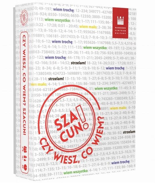 To nie jest zwykła edukacyjna planszówka! Szacun przybliża graczom wydarzenia, postacie i ciekawostki ostatnich stu lat niepodległej Polski. To opowieść o tym jak wyglądało i rozwijało się życie społeczne, polityczne i kulturowe obywateli od odzyskania niepodległości w 1918 roku aż po jubileuszowy rok 2018. O tym nie przeczytasz w szkolnym podręczniku! Każda z kart do gry kryje w sobie nietypowe pytania, które na pewno rozbudzą Twoją ciekawość oraz mało znane fakty z zakresu kultury, geografii, sportu i polityki. A dzięki archiwalnym zdjęciom poczujesz klimat wydarzeń z ostatnich stu lat polskiej historii. Sprawdź się! Na podstawie fotografii odgadnij pytanie, oszacuj poziom wiedzy swój oraz innych graczy i zbieraj żetony. ""Szacun"" to zabawa, integracja i wiedza w jednym! Liczba graczy: 2-8 osób. Czas gry: 60 minut. x