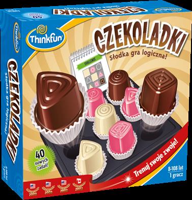 Rozmieść w bombonierce wszystkie czekoladki, korzystając ze wskazówek znajdujących się na kartach zadań. Gdy skończysz, odwróć kartę i sprawdź, czy czekoladki są na swoich miejscach. Łamigłówka zawiera 40 nowych zadań o czterech poziomach trudności.