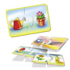 Zabawa polega na prawidłowym łączeniu ze sobą na zasadzie puzzli, dwóch elementów w logiczne pary. Podczas gry dziecko uczy się kojarzyć i łączyć elementy z którymi spotyka się w życiu codziennym.Wiek: od 3 lat.