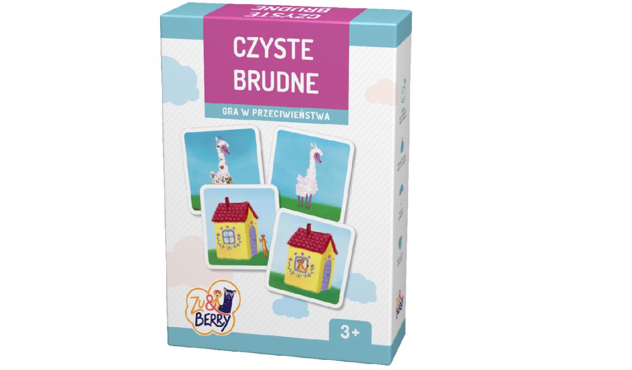 Czyste, brudne. Gra w przeciwieństwa to przygody bohaterów naszej serii: surykatki Zu i alpaki Berry. Na 34 kartach Zu i Berry prezentują przeciwieństwa, które młody bystrzak zestawia w oparciu o zmysły: smaku (kwaśny–słodki), słuchu (głośno–cicho), wzroku (duży–mały) i dotyku (zimny–ciepły).