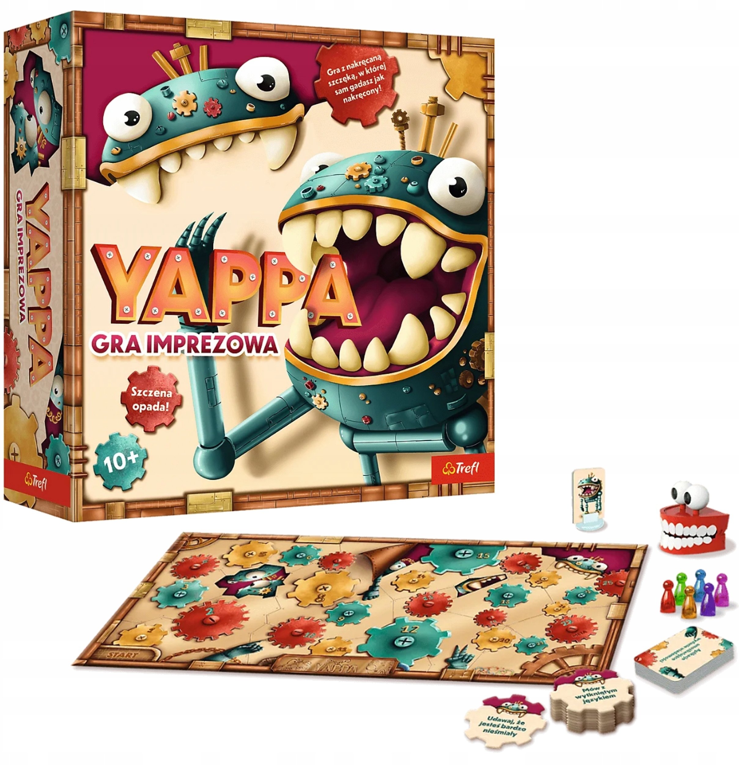 Opis produktuZasady bezpieczeństwaYAPPA to pełna energii, szalona gra towarzyska, w której liczy się refleks, spryt i stalowe nerwy! Czas na odpowiedź odmierzany jest przez wyjątkowy zegar nakręcaną szczękę, która buduje napięcie z każdą sekundą. Nakręć szczękę do oporu, weź kartę i zacznij błyskawicznie udzielać odpowiedzi, zanim czas się skończy! Każde poprawne hasło to cenne punkty, które przybliżają Cię do zwycięstwa. Wydaje się proste? Tylko do momentu, gdy do gry wkroczą różnego rodzaju przeszkadzajki, zabawne utrudnienia, które sprawiają, że nawet najłatwiejsze pytanie potrafi nagle stanowić wyzwanie. Musisz wykazać się kreatywnością, umiejętnością improwizacji i odpornością na presję a przede wszystkim dobrym humorem. YAPPA gwarantuje salwy śmiechu, emocje do ostatniej sekundy i niezapomniane rozgrywki w gronie rodziny i przyjaciół. Gotowi? Nakręć, kłap i wygraj! x