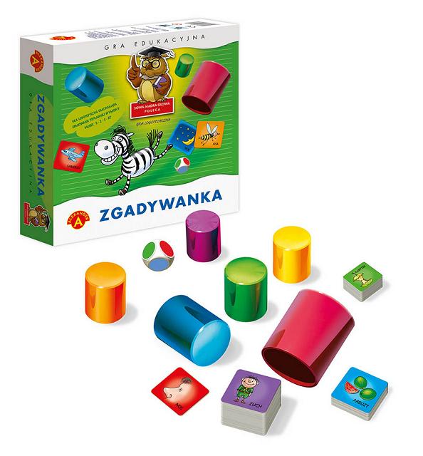 Przedstawiona gra ułatwia automatyzowanie głosek szeregu syczącego s-z-c-dz. Przeznaczona jest dla dzieci w wieku przedszkolnym i wczesnoszkolnym. W czasie gry dzieci uczą się wymowy poprzez zabawę, ćwicząc dodatkowo pamięć wzrokową i słuchową, spostrzeganie, koncentrację uwagi i myślenie. Prezentowaną grę można zmodyfikować odpowiednio do wieku dziecka, jego umiejętności czy liczby graczy. W grze ,,Zgadywanka"" zadanie polega na wyrzuceniu kostki i podaniu, jaki obrazek jest jako pierwszy pod przykrywką, której kolor odpowiada kolorowi wyrzuconemu kostką. Po starannym wypowiedzeniu nazwy, gracz może podnieść przykrywkę. Jeśli zgadł i prawidłowo wypowiedział wyraz - otrzymuje kartonik (punkt). Jeśli nie odgadnie - zakrywa ponownie kartonik, ale tak, aby wszyscy pozostali uczestnicy gry mogli zobaczyć, co ukryte jest pod podniesioną przykrywką. Wygrywa gracz, który na koniec będzie miał najwięcej kartoników z obrazkami.