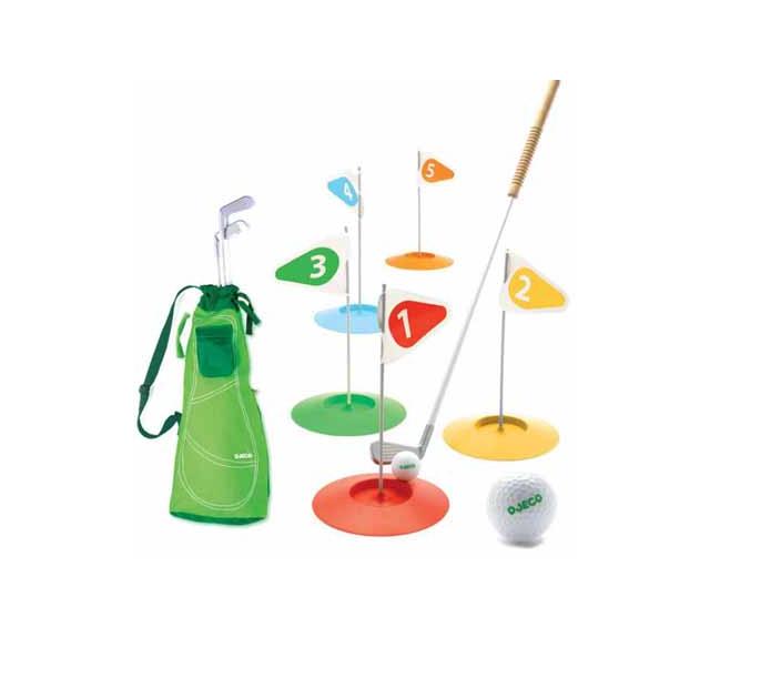 Składa się z kijów golfowych, chorągiewek, piłek do golfa oraz torby.