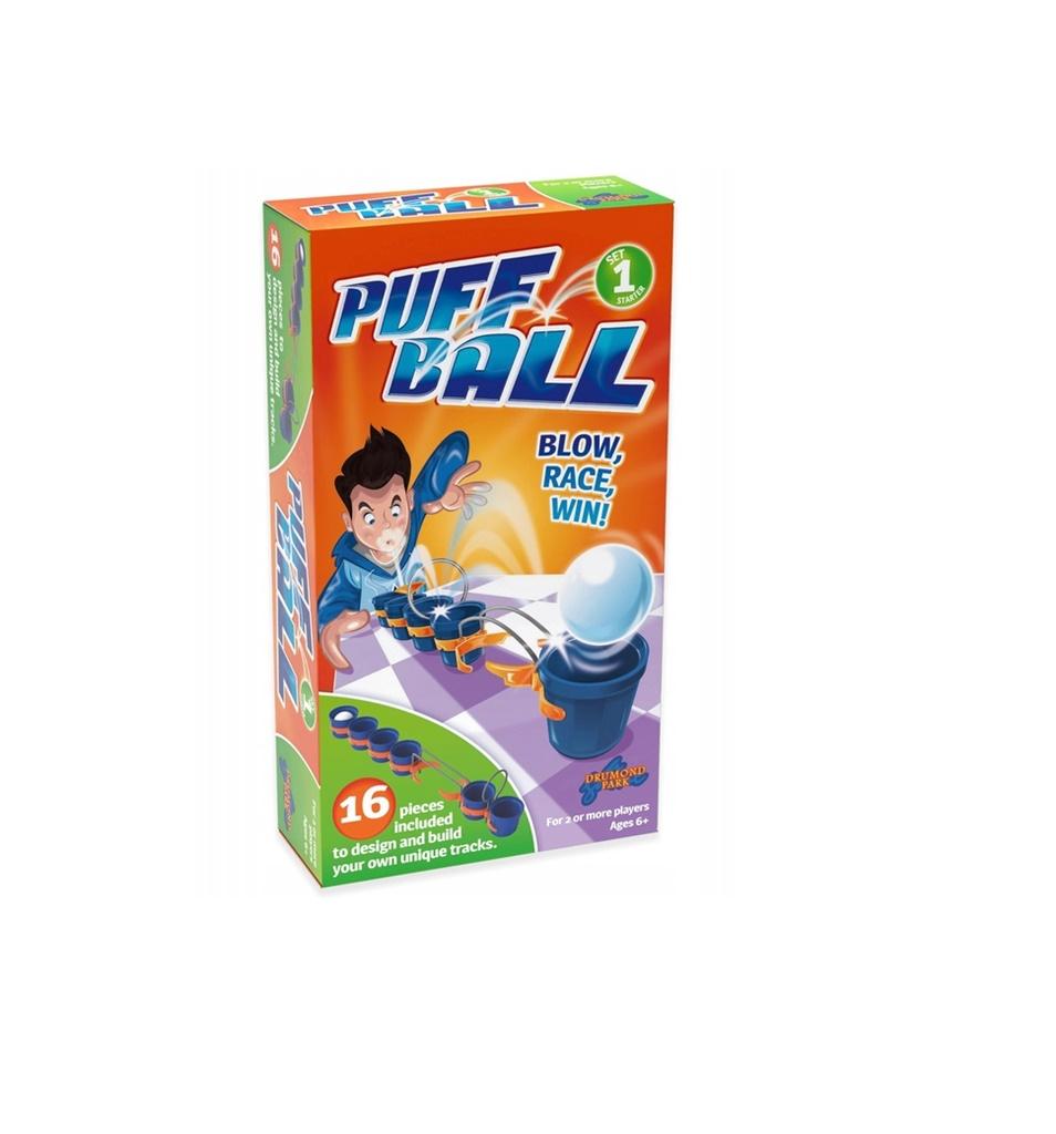 Zręcznościowa gra imprezowa - zbuduj tor, i dmuchaniem przeprowadź przez niego piłeczkę.