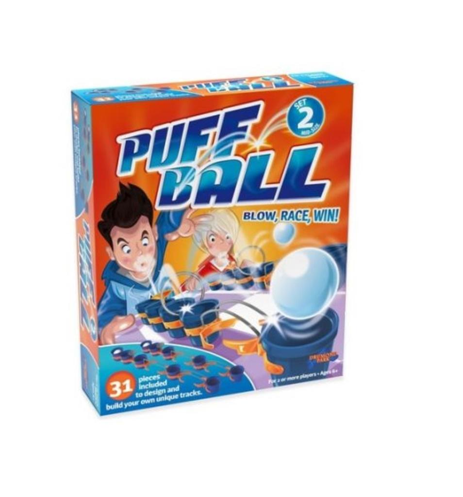 Zręcznościowa gra imprezowa - zbuduj tor, i dmuchaniem przeprowadź przez niego piłeczkę.