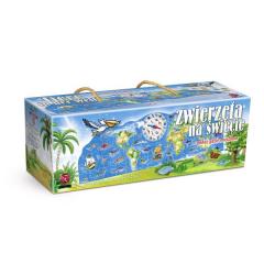 Duże, kolorowe puzzle z mapą świata, która przedstawia najpopularniejsze zwierzęta zamieszkujące kontynenty i oceany. Zadaniem graczy jest umieszczanie żetonu z danym zwierzątkiem na odpowiednim miejscu na mapie. Dodatkowym atutem gry jest kompas z ruchomą wskazówką. Wiek: od 5 lat.