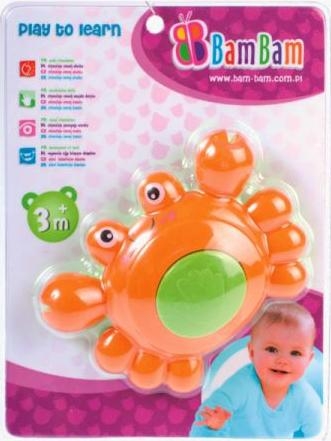 Grzechotka / Gryzak KRAB - Grzechotka gryzak doskonale zabawi dziecko podczas trudnego okresu ząbkowania, jednocześnie niwelując ból dziąseł. Barwne kolory grzechotki wraz z efektami dźwiękowymi rozwijają percepcję wizualną, słuchową i zdolności manualne dziecka.