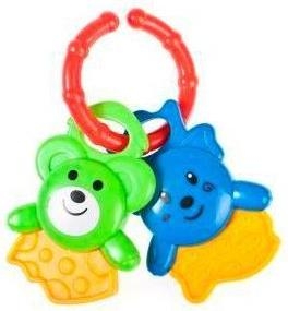 Grzechotka / Gryzak ZWIERZĄTKA- Grzechotka gryzak doskonale zabawi dziecko podczas trudnego okresu ząbkowania, jednocześnie niwelując ból dziąseł. Barwne kolory grzechotki wraz z efektami dźwiękowymi rozwijają percepcję wizualną, słuchową i zdolności manualne dziecka.
