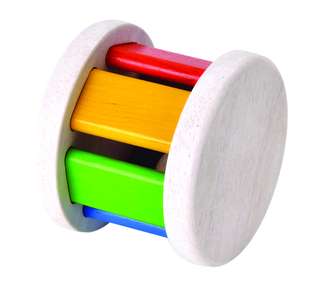 Podczas turlania kulka wewnątrz grzechotki przeskakuje po deseczkach wydając delikatne odgłosy. Znakomita zabawka dla raczkujących szkrabów!