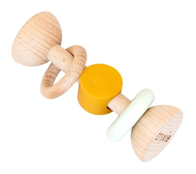 Najniższa cena z ostatnich 30 dni: 32,33 zł Opis produktuZasady bezpieczeństwaZabawnie zaprojektowana z myślą o małych rączkach, ta grzechotka jest idealna dla noworodków i maluszków. Każdy nowy przyjaciel oferuje różnorodne bodźce sensoryczne dzięki miękkiemu silikonowi i gładkiemu drewno bukowemu, a zaokrąglone krawędzie oraz radosne kolory przyciągają wzrok dziecka. Grzechotka wydaje delikatny, satysfakcjonujący dźwięk, a silikonowe elementy świetnie nadają się do gryzienia, co wspiera rozwój umiejętności manualnych oraz koordynacji ręka-oko. Producent: Trixie Baby Skład: Drewno bukowe FSC(R) - 100%, silikon Rekomendowany wiek: 0m+ x