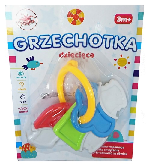 Zabawka wspomaga naukę chwytania i wrażliwość na dźwięk.