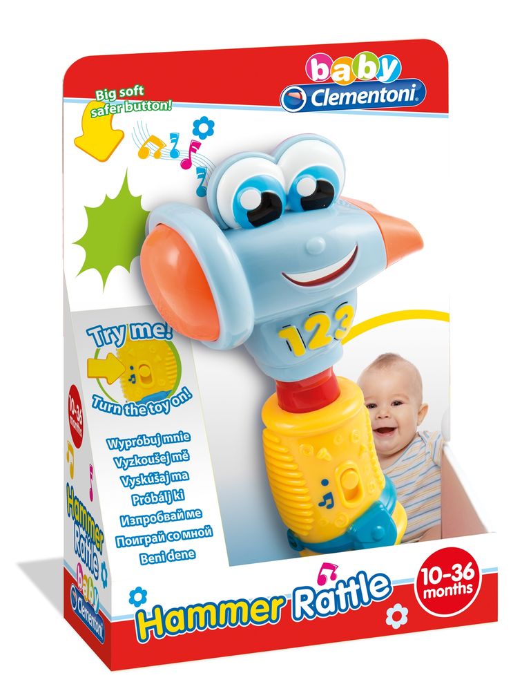 Młotek Donatello to zabawne, elektroniczne narzędzie edukacyjne. Dziecko naśladując dorosłego, ćwiczy umiejętności manualne i doskonali kontrolę nad własnymi ruchami. Donatello uczy liczyć dzięki wesołej piosence i trzem muzycznym rymowankom z liczbami. Przy uderzaniu młotkiem słychać sympatyczne efekty dźwiękowe. Gumowa końcówka pozwala na całkowicie bezpieczną zabawę i jest gwarancją, że powierzchnia zabawy nie ulegnie uszkodzeniu.