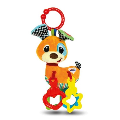 Mięciutka grzechotka z plastikowymi zawieszkami do gryzienia podczas ząbkowania.