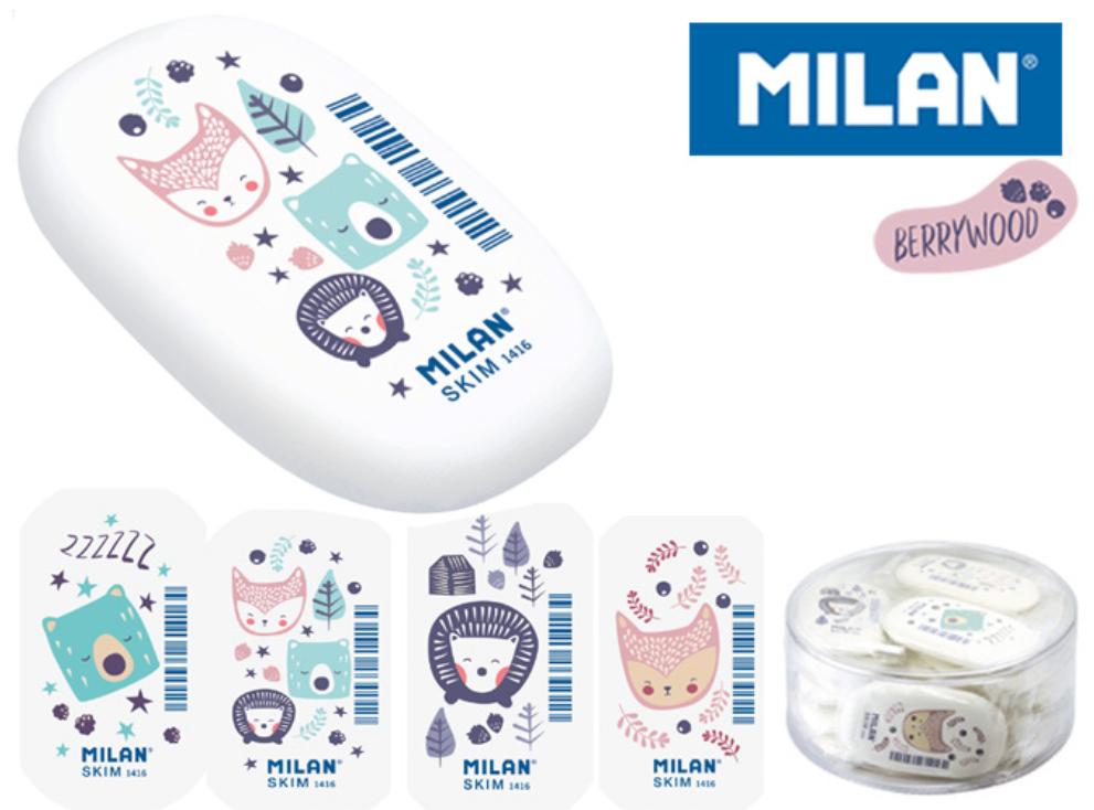 Miękkie gumki syntetyczne z nadrukiem kolekcji BERRYWOOD. Do ścierania większości rodzajów grafitu z każdego rodzaju papieru. Gumka owalna, biała z nadrykiem. 16 sztuk w opakowaniu.