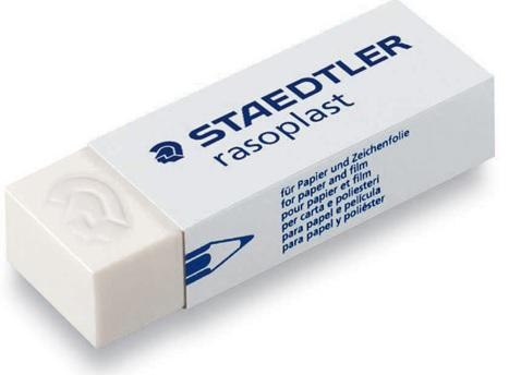 Gumka do mazania serii Rasoplast firmy Staedtler. Oferuje wysoką wydajność wymazywania, przy zachowaniu dbałości o powierzchnię papieru. Pozostawia minimalną ilość resztek, a papierowa, laminowana otoczka zapewnia płynną regulację wysunięcia gumki oraz wygodny uchwyt.