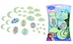 Zestaw kształtów świecących w ciemności, na niektórych nadruki z postaciami z bajki, w zestawie masa plastyczna umożliwiająca przyklejenie do ściany, 30 elementów.