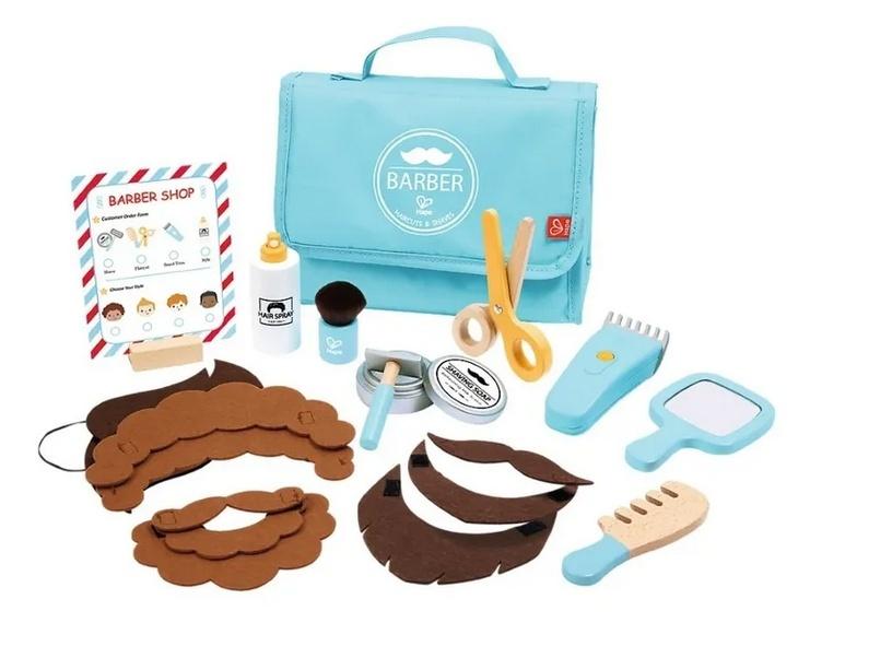 Opis produktuZasady bezpieczeństwaZestaw Małego Barbera to kreatywna zabawka, która pozwala dzieciom wcielić się w rolę fryzjera lub barbera. W zestawie znajduje się aż 22 elementy, w tym wibrująca maszynka do strzyżenia, filcowe brody i wąsy, akcesoria fryzjerskie oraz materiałowa torba na rzepy, która ułatwia przechowywanie.