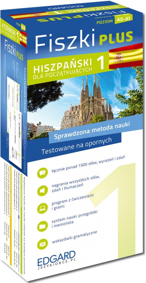 Najniższa cena z ostatnich 30 dni: 23,54 zł Opis produktuZasady bezpieczeństwaHiszpański Fiszki PLUS dla początkujących 1 (A0-A1) to pakiet będący częścią rozbudowanego systemu nauki, dzięki któremu szybko i skutecznie nauczysz się słownictwa na każdym poziomie zaawansowania. Każdy zestaw Fiszek PLUS to starannie przygotowany materiał, wysokiej jakości nagrania wymowy wraz z programem komputerowym, memolistą i grami językowymi. Z Fiszkami PLUS nie tylko zapamiętujesz słówka, lecz także poznajesz słownictwo w kontekście, uczysz się nieregularnych form oraz popularnych zwrotów językowych. Od dziś nauka języka stanie się przyjemnością! - Ucz się ponad 1500 słów, wyrażeń i zdań – poznaj użycie gotowe wzorce komunikacyjne, utrwal reguły gramatyczne. - Poznaj prawidłowa wymowę. Słuchaj nagrań wszystkich słówek i zdań oraz ich tłumaczeń - Utrwalaj materiał z ćwiczeniami i grami językowymi dostępnymi w programie (do pobrania) - Ucz się skutecznie dzięki systemowi kolorowych przegródek. Sprawdź na memoliście, które słówka już znasz! - Twórz własne playlisty nagrań wymowy i ucz się mobilnie – w drodze do pracy lub szkoły! Fiszki PLUS to rozbudowana seria fiszek, ułożona w wygodny system, dzięki któremu sam decydujesz, od którego poziomu zacząć naukę. W ramach serii dostępne są wszystkie trzy poziomy zaawansowania – początkujący, średnio zaawansowany i zaawansowany. Aby ułatwić wybór fiszek, każdy z trzech poziomów (podstawowy, średnio zaawansowany i zaawansowany) podzielono na trzy kolejne zestawy: 1, 2, 3 tak byś jak najlepiej dobrał najlepsze dla siebie fiszki i z łatwością mógł zdecydować o wyborze kolejnego zestawu. x