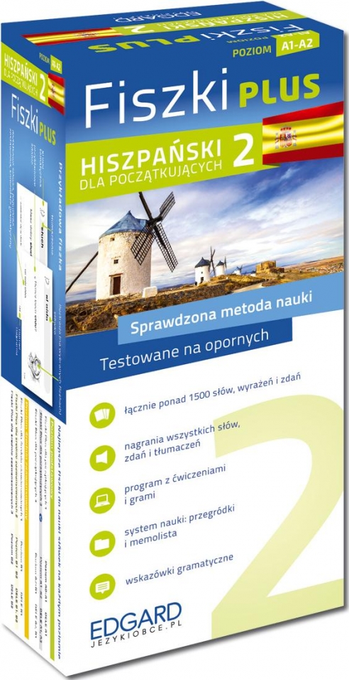 Hiszpański Fiszki PLUS dla początkujących 2 (A1-A2) to pakiet będący częścią rozbudowanego systemu nauki, dzięki któremu szybko i skutecznie nauczysz się słownictwa na każdym poziomie zaawansowania. Każdy zestaw Fiszek PLUS to starannie przygotowany materiał, wysokiej jakości nagrania wymowy wraz z programem komputerowym, memolistą i grami językowymi.