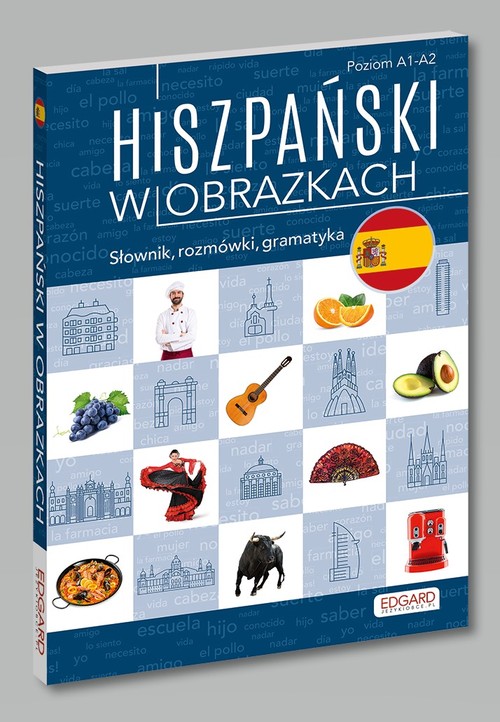 Hiszpański w obrazkach. Słówka, rozmówki, gramatyka to kurs leksykalno-gramatyczny z ilustracjami na poziomie podstawowym (A1-A2) dla osób początkujących w nauce języka hiszpańskiego ale także dla tych, którzy chcą utrwalić poznane wcześniej słownictwo.