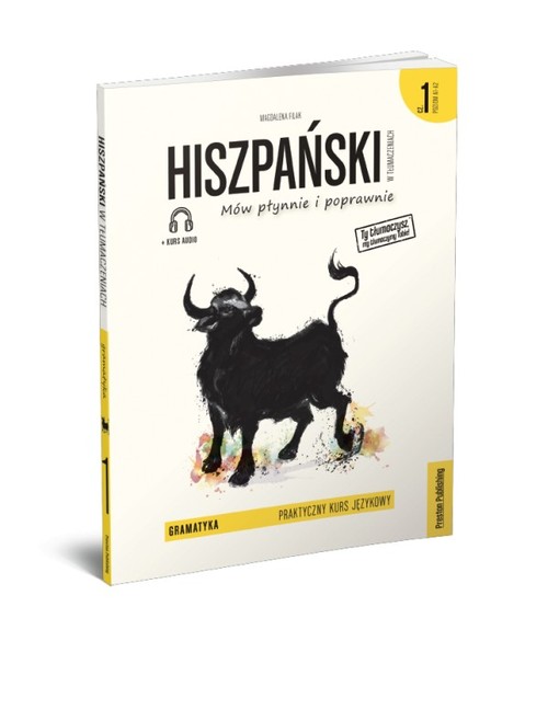 Książka do nauki języka hiszpańskiego Hiszpański w tłumaczeniach. Gramatyka 1 zawiera:jasny, nowatorski i przystępny układ stron usprawniający proces nauki, dzięki czemu staje się ona czystą przyjemnością,czytelnie i wyczerpująco wyjaśnioną teorię, dzięki czemu szybko zrozumiesz zasady gramatyczne języka hiszpańskiego,setki zdań i wyrażeń przydatnych na co dzień, ułożonych według zagadnień gramatycznych, zgodnie ze stopniowaniem trudności,praktyczne komentarze i wskazówki, dzięki którym nauczysz się właściwego użycia języka,płytę CD (MP3) z ponad czterogodzinnym kursem audio pomagającym w utrwaleniu przyswojonej wiedzy, ćwiczeniu wymowy i dobrego konstruowania zdań.Uwaga! Do nowych wydań książek nie są dołączone płyty CD. Nagrania mp3 można ściągnąć ze strony https://dopobrania.prestonpublishing.plTo książka wymarzona dla samouków i wszystkich, którzy chcą sprawdzić swoje umiejętności językowe na poziomie podstawowym. W prosty i jasny sposób przekazuje wiedzę na temat struktur gramatycznych i zachęca do ćwiczeń. Dzięki temu nauka języka hiszpańskiego staje się czystą przyjemnością!