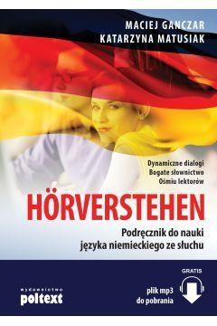 Hörverstehen. Podręcznik do nauki języka niemieckiego ze słuchu jest przeznaczony dla osób uczących się języka niemieckiego na poziomie od B1+ do C1 według Europejskiego systemu opisu kształcenia językowego. Powstał on z myślą o maturzystach chcących pisać maturę na poziomie rozszerzonym, studentach filologii germańskiej oraz uczestnikach kursów językowych przygotowujących się do certyfikatów na ww. poziomach. Celem podręcznika jest rozwijanie umiejętności słuchania, wymaganej na egzaminach językowych, ale także wprowadzanie nowego słownictwa oraz utrwalanie go w odniesieniu do różnych sytuacji i tematów.