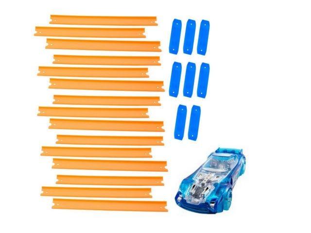 4,5 metra torów pozwoli rozbudować świat Hot Wheels® według własnego pomysłu. Zestaw zawiera jeden samochodzik Hot Wheels® do zabawy na 12 elementach toru o długości 22,5 cm, 6 elementach o długości 30 cm oraz 18 łączników. Pędź swoim samochodzikiem lub przetestuj prędkość innych pojazdów ze swojej kolekcji. Tory łączą się z innymi zestawami Hot Wheels®. Sprzedawane osobno w zależności od dostępności. Nie wszystkie pojazdy Hot Wheels® pasują do tego produktu.