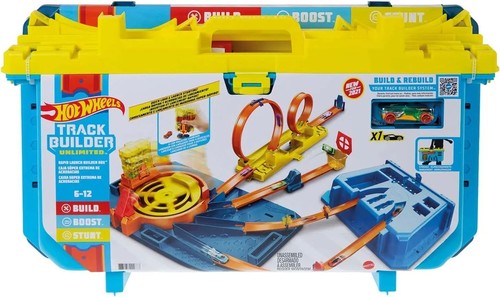 Odkryj nieskończone możliwości zabawy z zestawem Hot Wheels Track Builder Turbowyrzutnia GVG11! Ten wyjątkowy zestaw do konstruowania pozwala na tworzenie dynamicznych torów wyścigowych, pełnych niesamowitych skoków, zakrętów i pętli.