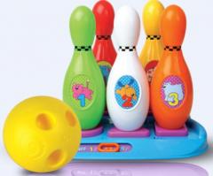 Kręgle, które dostarczą dziecku mnóstwo zabawy, a dodatkowo wspomagają w nauce cyferek oraz zwierzątek i ich odgłosów. Wydają również zabawne melodie. Kiedy dziecko odgadnie prawidłowy kształt i umieści kręgle w odpowiednim miejscu podstawy usłyszy w zależności od wybranej funkcji: cyfry, nazwę zwierzątka , jego charakterystyczny dźwięk oraz zabawne melodie . Oprócz nauki zabawka zapewni Dziecku mnóstwo zabawy w zbijanie kręgli.