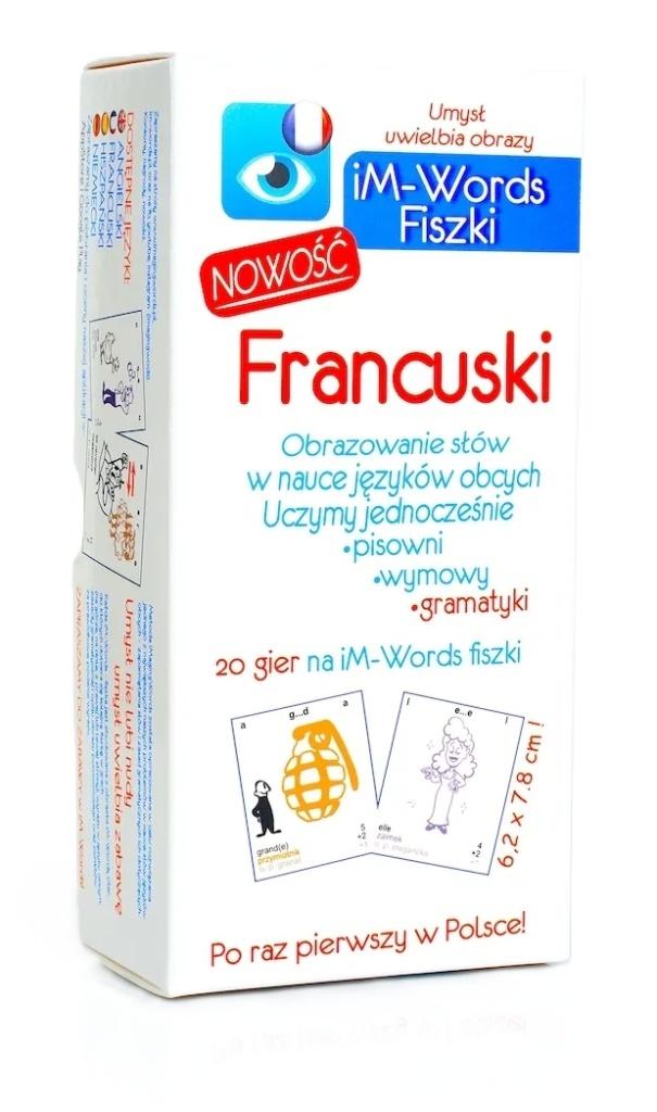 Oprócz tego budowa fiszki iM-Words pozwala na urozmaicenie nauki za pomocą gier IM-Words. Górny rząd liter wskazuje, jak zgodnie z zasadami gier iM-Words dobierać i grać fisz-kartami iM-Words czyniąc naukę jeszcze bardziej zajmującą. Każdy awers dodatkowo posiada oznaczenie języka, dzięki temu możesz uczyć się nie tylko jednego języka, dodatkowo urozmaicając sobie naukę. A oprócz tego każda iM-Words fisz-karta jest zrobiona z wysokiej jakości papieru kredowego i o dużym rozmiarze 7,8 x 6,2 cm! Dzięki temu masz większy komfort nauki.