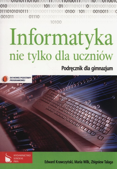 NUMERDOPUSZCZENIA 172/2009Nowy podręcznik Informatyka nie tylko dla uczniów przeznaczony jest na dwie lub trzy godziny w cyklu kształcenia. Podręcznik dostosowany jest do nowej Podstawy programowej. Jego konstrukcja ułatwia nauczycielowi planowanie procesu dydaktycznego. Przy każdym rozdziale znajduje się tabela z poziomem wymagań oraz proponowaną liczbą godzin lekcyjnych przeznaczonych na zrealizowanie tematów. Omawiając poszczególne zagadnienia, Autorzy odwołują się do obecnie używanego sprzętu komputerowego i aktualnych wersji oprogramowania. Z podręcznikiem mogą pracować zarówno uczniowie korzystający z systemu operacyjnego Windows XP i Windows Vista oraz pakietu Microsoft Office 2003 i Microsoft Office 2007.W podręczniku uczeń znajdzie: szczegółowo omówione zagadnienia z obszaru wiedzy informatycznej, przykłady rozwiązań problemów informatycznych ilustrowane zrzutami ekranowymi, ważne praktyczne rady jak efektywnie korzystać ze sprzętu komputerowego i oprogramowania, pytania i zadania do każdego tematu oraz zadania przekrojowe na końcu działu, wyróżnione treści rozszerzające wiedzę z poziomu podstawowego.Przewodnik metodyczny na CD zawiera: program nauczania uwzględniający nową podstawę programową niezbędne informacje, jak uczyć informatyki w gimnazjum, plan nauczania, cele poszczególnych lekcji, porady, jak przygotować się do hospitacji lekcji i rozmowy pohospitacyjnej.