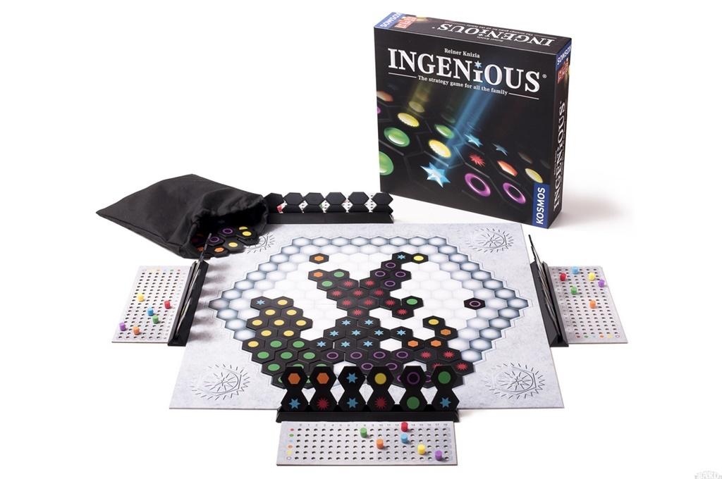 Klasyczny familijny Geniusz w wersji Black: z większą planszą, ale też plastikowymi komponentami (płytki i stojak) oraz osobnymi planszetkami z torami punktacji dla każdego gracza!