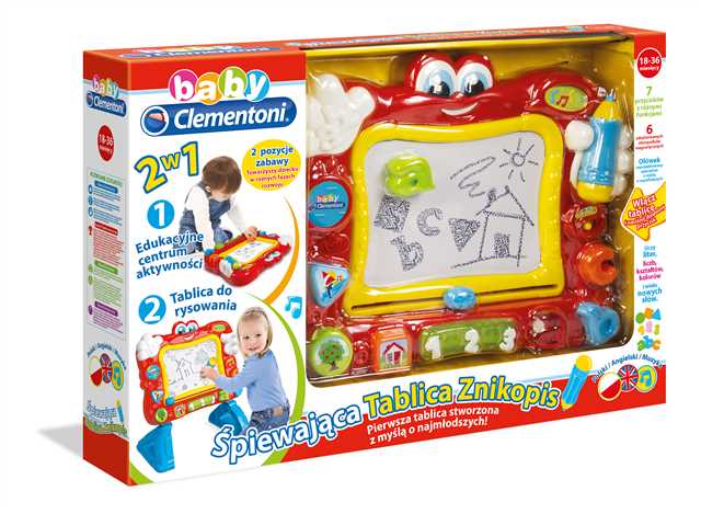 Tablica znikopis i bogate centrum rozrywki dla najmłodszych. Uczy liczb, liter, kształtów, kolorów i podstaw języka angielskiego. 6 wyjmowanych kształtów magnetycznych i duży ułatwiający przenoszenie uchwyt.
