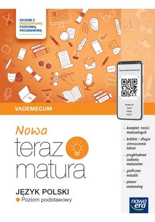 Opis produktuZasady bezpieczeństwaAutorzy: Hanna Moszczeńska, Marianna Gutowska, Zofia Kołos, Jan Jończy, Anna Polińska i inni Vademecum ,,NOWA Teraz matura. Język polski"" pozwala powtórzyć treści przedmiotowe oraz zapoznać się ze sposobami rozwiązywania zadań egzaminacyjnych. komplet wymaganej teorii i wiedzy o lekturach w jednym miejscu Dostęp do zasobów cyfrowych jest możliwy po rejestracji w aplikacji app.nowaterazmatura.pl i aktywacji kodu dostępu z publikacji. Kod umożliwia dostęp do materiałów od 1 września do 31 sierpnia następnego roku, niezależnie od dnia aktywacji. x
